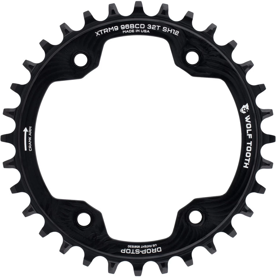 Spezifikationen:Einsatzbereich:Cross Country, All Mountain, EnduroBefestigung:96 mm Lochkreis, 4-Arm asymmetrischZähne:32 Z, 34 ZSchaltstufen:1×12-fachTechnische Daten:Kettenlinie:49 mmMaterial:Aluminium (7075-T6)Kompatibilität:Shimano XTR M9000Shimano XTR M9020Shimano 12-fach HG+ (Hyperglide+) KettenOriginal Shimano XTR Kettenblattschrauben (M7), Abdeckungen nicht erforderlichFeatures:für HG+ 12-fach Ketten optimiertes Zähneprofilhervorragender KettenrückhaltKettenlinie auch für die meisten Boost-Bikes geeignetMade in the USA