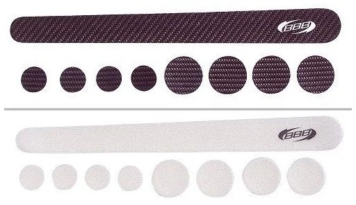 Features:strapazierfähige, dicke Klebepads mit Carbon-Schutzschicht zum Schutz des Rahmenlacksbesonders robust, flexibel und nässebeständigverhindert Beschädigungen, die durch Reibung zwischen Teilen und Rahmen entstehen oder durch Steinschläge verursacht werdenSet beinhaltet verschiedene Größen und FormenHerstellernummern:carbon BBP-56:2905615621Lieferumfang:1 x BBB ClearSkin lang4 x BBB ClearSkin rund, klein4 x BBB ClearSkin rund, groß