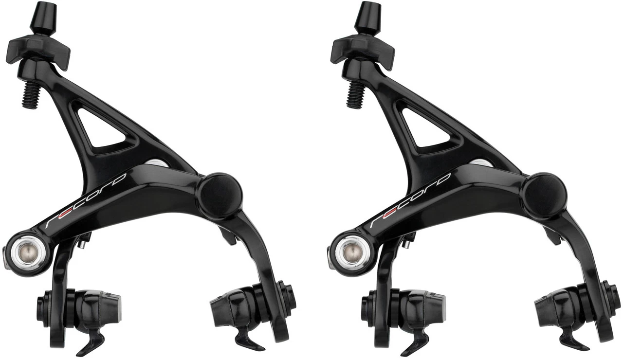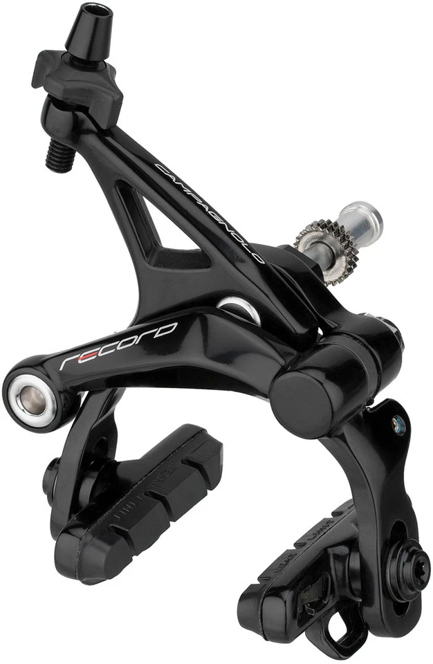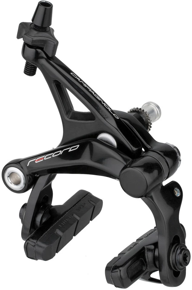 Spezifikationen:Serie:Record 12-fachEinsatzbereich:Road, Triathlon, CyclocrossAusführung:Doppelgelenk-SeitenzugbremseBefestigung:BremssockelTechnische Daten:Material:AluminiumBelag:spezielle Mischung für kürzeren Bremsweg bei jedem Wetter, weniger VerschleißBremsmedium:BremszugEinstellmöglichkeiten:Höhenverstellbarkeit:40-50 mm (von Bremsbolzen zu Bremsschuhbefestigung)Features:Kompatibilität mit 28 mm Reifen: die Struktur der Bremse ermöglicht die Montage von 28 mm Reifen sowohl auf Felgen der Klasse C17 als auch der Klasse C19Dual Pivot Bremsen auch an der Hinterradbremse bewirken eine stärkere Bremsleistung im Vergleich zur Mono-Pivot-Bremse, vor allem wenn sich die Bremsbeläge in der Nähe der Bremsfläche befindenaerodynamisches Design: der vordere Bremshebel ist geschlossen, um eine bessere aerodynamische Leistung zu erzielen und um sich dem aerodynamischen Rahmen besser anzupassenBremsschuhträger mit dem exklusiven System zum Einsetzen und Entfernen der BremsschuheTechnologie:Dual Pivot