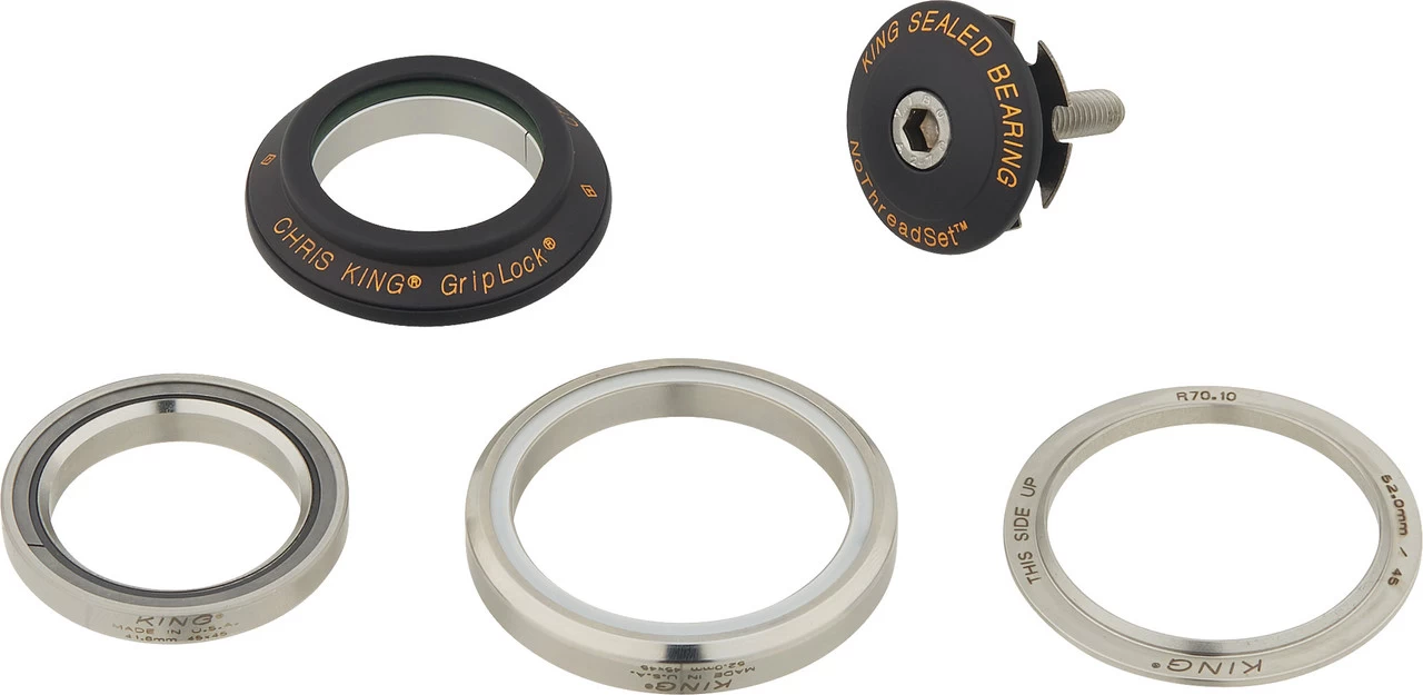 Verwendung:Für 1 1/8″ Steuerrohre oben und 1,5″ unten in Kombination mit 1 1/8″ – 1,5″ tapered Gabeln konzipiert.Spezifikationen:Einsatzbereich:Road, Gravel, Cyclocross, Cross Country, All Mountain, Enduro, DownhillBauart:integriert (IS)Außendurchmesser oben:42 mmInnendurchmesser oben:28,6 mmAußendurchmesser unten:52 mmInnendurchmesser unten:40 mmSteuerrohr:1 1/8″ – 1,5″Gabelschaft:1 1/8″ – 1,5″Technische Daten:Material:AluminiumLagerung:mehrfach gedichtete Industrielager aus EdelstahlDeckel:Aluminium Ahead-KappeFeatures:integrierter Ahead-Steuersatz mit nur 9 mm BauhöheCNC-gefrästes Aluminiummehrfach gedichtete Chris-King-Präzisionslagerentwickelt und hergestellt in Portland, Oregon (USA)Herstellernummern:black:CAB1gold:CAY1matte jet:CAB2matte mango:CAM2matte slate:CAH2matte turquoise:CAT2navy:CAN1red:CAR1silver:CAS1two tone-black-gold:CABYLieferumfang:1 x Steuersatz Chris King DropSet 2 IS42/28,6 – IS52/40 GripLock1 x Ahead-Kralle Chris King1 x Ahead-Kappe Chris King