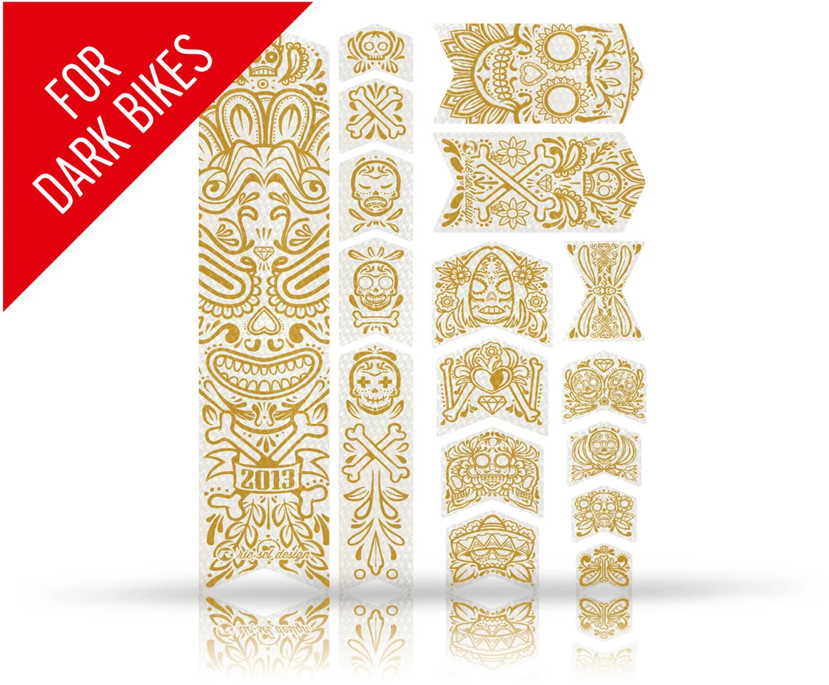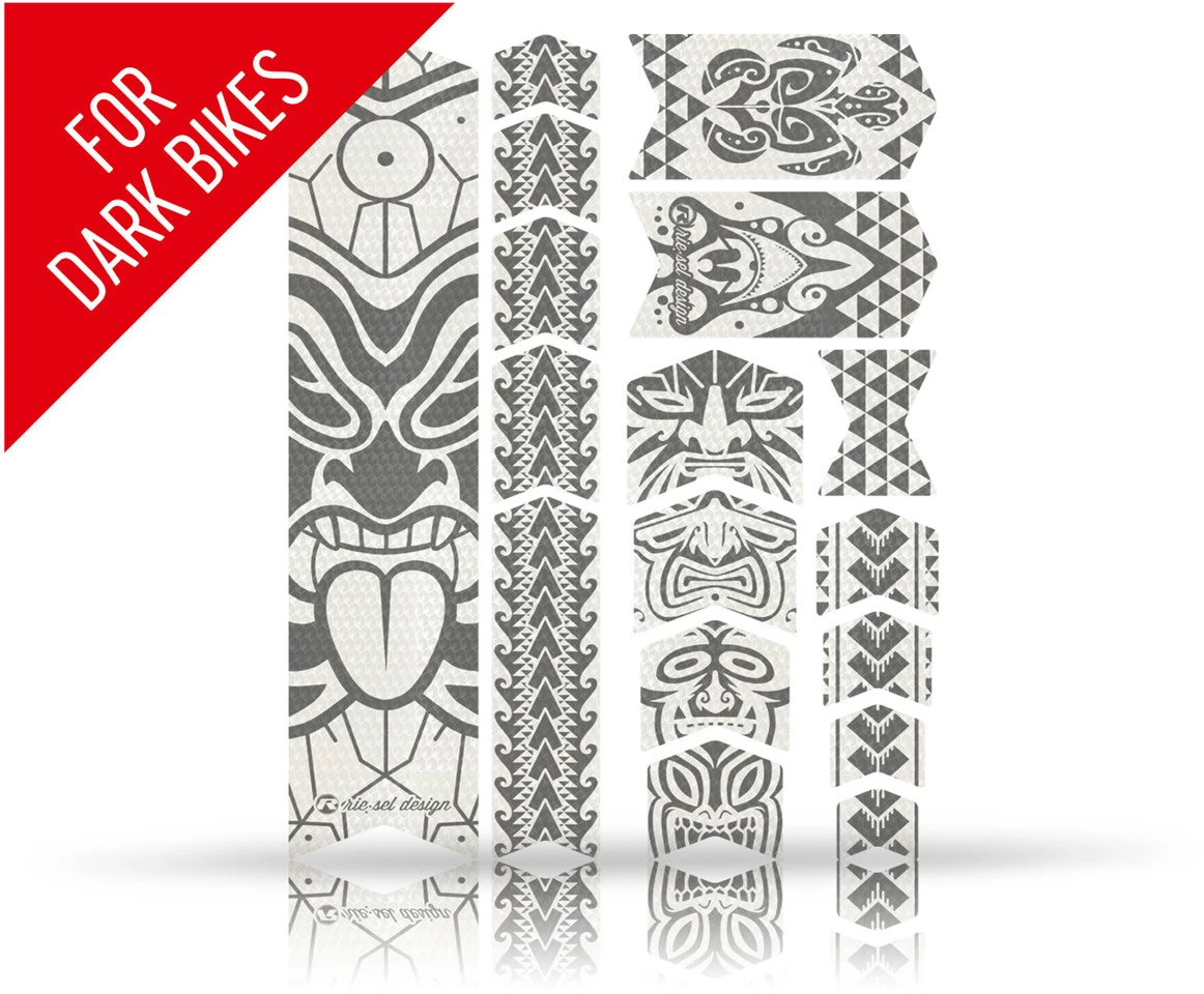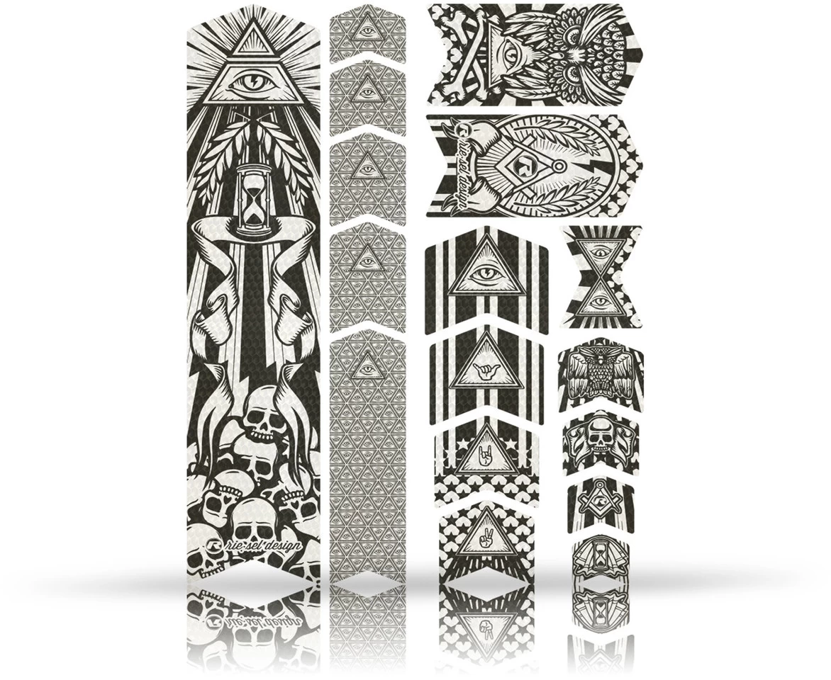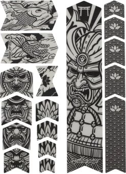 Features:17 Shapes zwischen 70 x 340 mm und 30 x 30 mm für maximale Anpassbarkeitaus unverwüstlichem Honeycomb MaterialselbstklebendFarben verblassen nichthalbtransparent, verschmilzt optisch mit der Rahmenfarbenur 41 g GesamtgewichtHerstellernummern:dazzl:T3-F004camo:T3-F003maori:T3-F005japan:T3-F006clear:T3-F002stickerbomb:T3-F001Lieferumfang:1 x Rahmenschutz Set rie:sel frame:TAPE 3000
