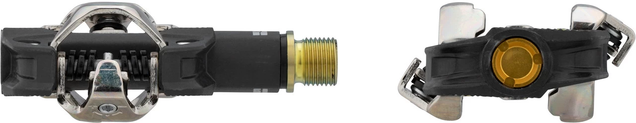 Die Auslösehärte ist von 6 – 14 Nm beidseitig einstellbar. Der Pedalkörper besteht aus robustem, leichten Carbon. Die Achse besteht aus leichtem, edlen Titan. Die Titan-Achse sorgt für das minimale Gewicht von lediglich 150 g pro Pedal. Alle Pedale der X-Track Serie sind kompatibel mit dem SPD System von Shimano.
