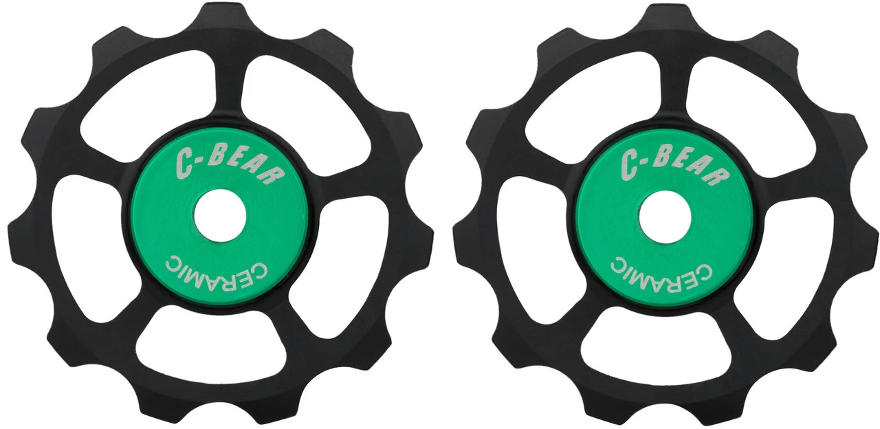 Mit den C-BEAR Shimano/SRAM Alu Schalträdchen für 10- und 11-fach Antriebe kannst Du die Performance Deines Schaltwerks beträchtlich erhöhen. Ihr Körper besteht aus Aluminium, die Keramiklagerkugeln laufen in Stahlrinnen. Wusstest Du, dass Schaltröllchen die am schnellsten drehenden Teil am Fahrrad sind? Daher liegt hier so viel Optimierungspotenzial.