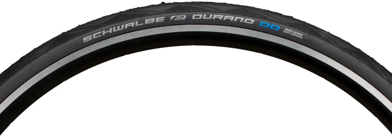 Das DD im Durano DD Performance Drahtreifen von Schwalbe steht für Double Defense und der Name ist Programm: Zusätzlich zum RaceGuard Schutzgürtel gibt es einen effektiven Gewebeschutz auf der Seitenwand. Durch sein hohes Schutzniveau und die guten Fahreigenschaften ist Durano DD für Dich eine Empfehlung für den Einsatz auf dem E-Roadbike.