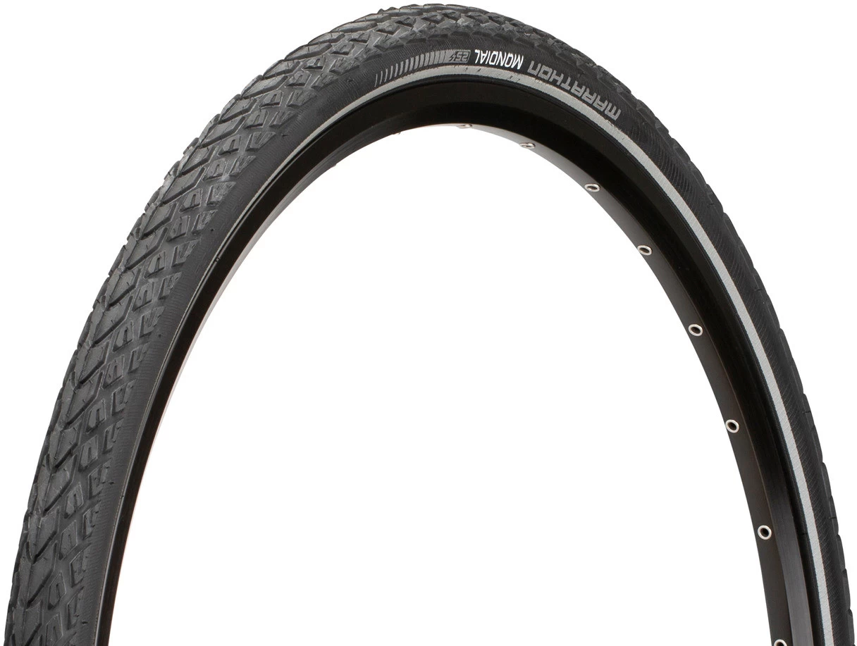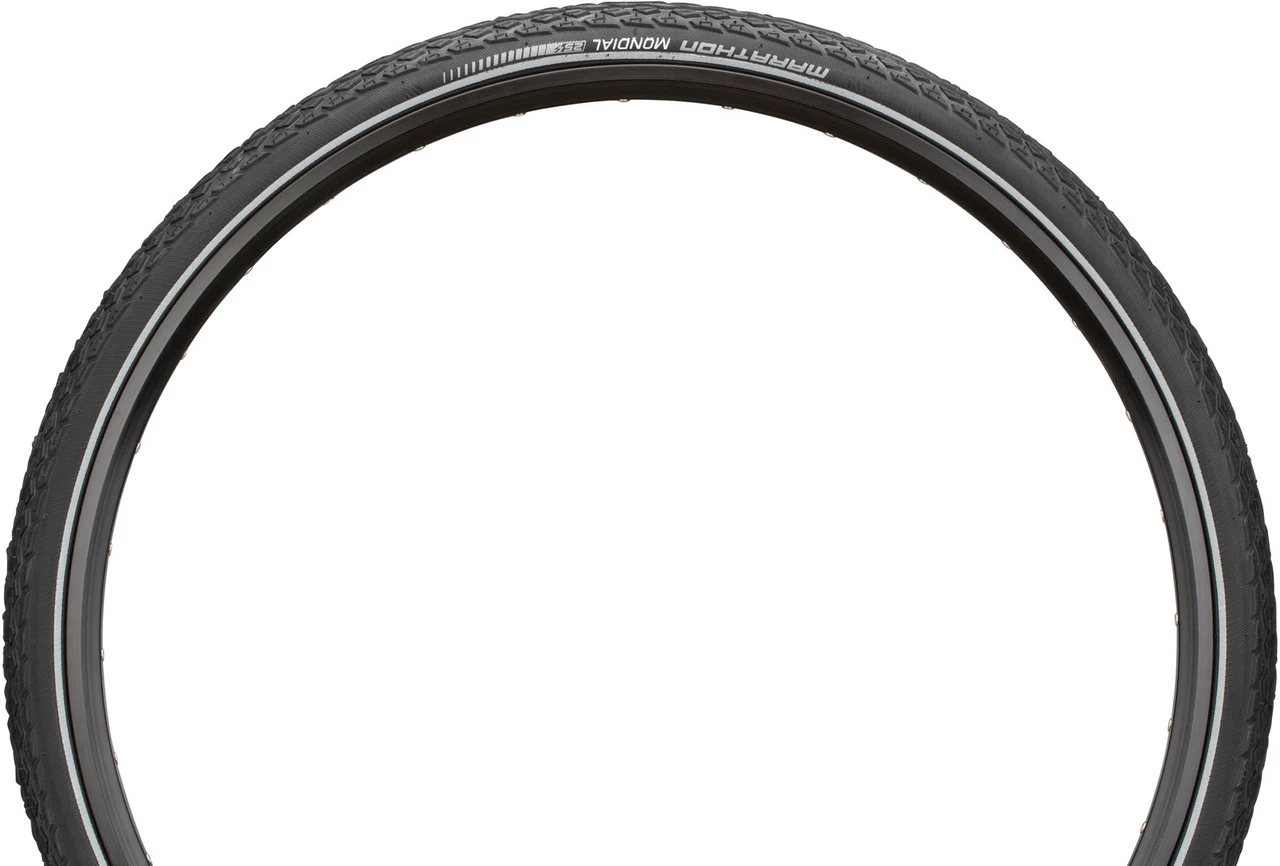 Der Marathon Mondial Evolution Faltreifen von Schwalbe rollt über jeden Untergrund. Konstruktion und Compounding mit der aktuellen Schwalbe Technologie machen es möglich. TravelStar Compound für beste Fahreigenschaften. DoubleDefense macht die leichte, aber gleichzeitig extrem robuste Konstruktion sicher.