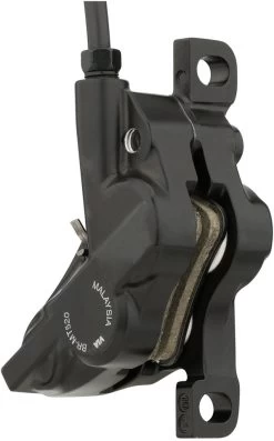Das Shimano BR-MT520 + BL-MT501 Scheibenbremsenset (VR + HR) bietet Dir die Kraft von je 4 Keramik-Kolben vorne und hinten und lässt sich daher für All Mountain bis hin zum Freeride-Bereich einsetzen. Die Bremssättel sind per One Way Entlüftung ganz einfach sachgemäß zu warten. Auf der anderen Seite helfen die Bremsgriffe mit Servo Wave Technologie bei der Dosierung der ausreichend gegebenen Bremsleistung. Dank der I-Spec II Konstruktion kann man die Ergonomie im Cockpit verbessern und Schaltgriffe platzsparend integrieren.