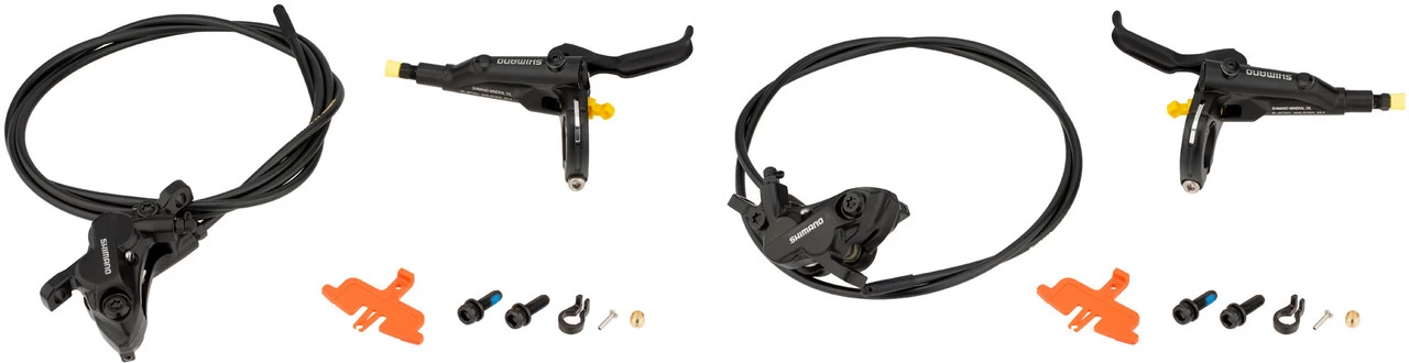 Lieferumfang:2 x Scheibenbremse Shimano BR-MT520 + BL-MT501, VR und HR1 x Bremsleitung Shimano SM-BH90-SS 1000 mm (VR)1 x Bremsleitung Shimano SM-BH90-SS 1700 mm (HR)2 Paar Bremsbeläge Shimano Resin2 x Insertpin2 x Olive4 x Befestigungsschraube Bremssattel2 x Sprengringmontagefertig, befüllt, nach der Montage ist eine Entlüftung zu empfehlenDirekt mitbestellen:Adapter für PM-Nichtdirektmontage und IS-MontageWerkzeug TL-BH61 zur Insertpin-MontageEntlüftungsdistanzstück Y-8FF19000