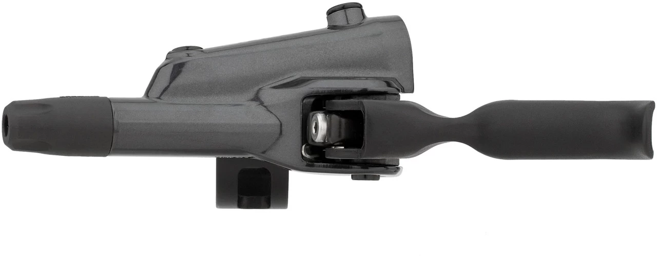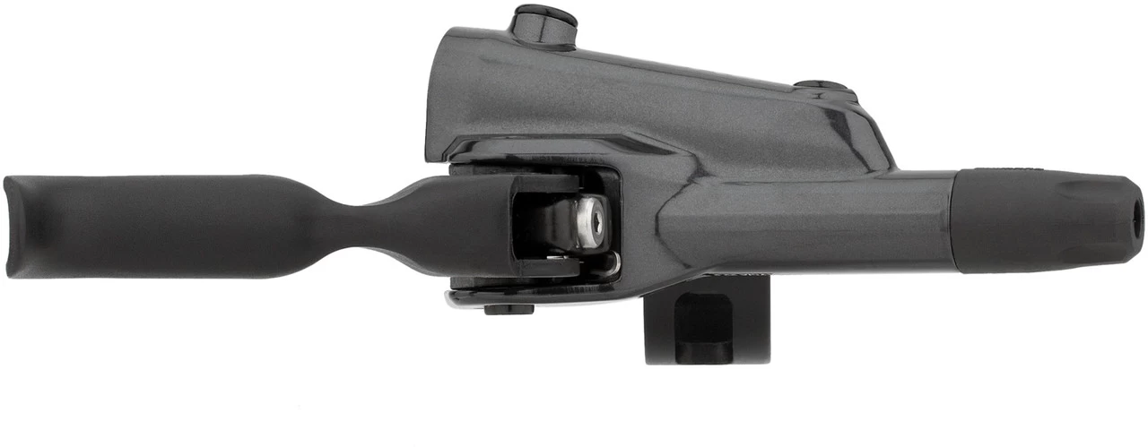 Der Shimano Deore BL-M6100 Bremsgriff für den All-Mountain- und Enduro-Einsatz verfügt über einen 2-Finger-Bremshebel aus Aluminium, dessen Griffweite sich per Innensechskant-Werkzeug einstellen lässt. Am Lenker montiert wird er über eine geteilte Schelle, wobei das I-Spec-EV-Interface die platzsparende Kombination mit einem passenden Schaltgriff ermöglicht. Für eine optimale Umsetzung des Hebelwegs in Bremskraft sorgt die eingebaute Servo-Wave-Technologie. Und wie die Bremsgriffe aus den Shimano Top-Gruppen wurde auch der Deore BL-M6100 mit einem zusätzlichen Abstützungspunkt am Lenker ausgestattet, was mehr Kontrolle und Stabilität zur Folge hat.