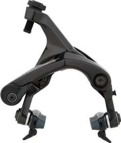 Die Felgenbremse BR-R9200 aus der Top-Rennradgruppe Dura-Ace von Shimano gibt es auch mit speziellen Bremsbelägen für Carbonfelgen. Das Modell weist die bewährte symmetrische Doppelgelenkkonstruktion auf und bringt etwa 30 Gramm weniger auf die Waage als die Ultegra-Version. Das liegt vor allem an den Cartridge-Bremsschuhhaltern aus Magnesium, die natürlich winkelverstellbar sind, und an der Hardware aus Titan. BR-R9200 überzeugt mit seiner effizienten, genau dosierbaren Bremsleistung. Du kannst damit Reifen bis 28 mm Breite fahren.