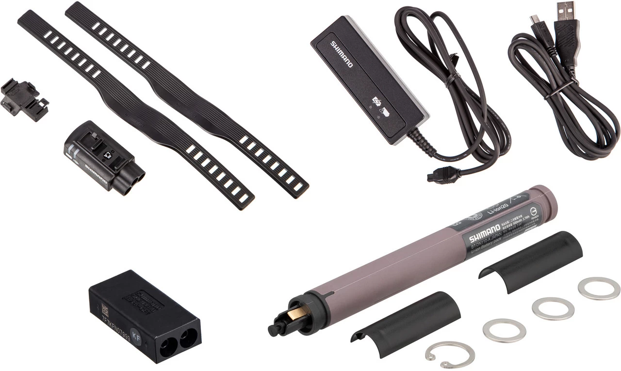 Innenlager: Shimano empfiehlt SM-BBR60 oder SM-BB72-41B Pressfit Hollowtech II.2 x Bremsscheibe RT-MT800 (140, 160 oder 180 mm)bei externem Verteiler (SM-EW90-A), Montage unter dem Vorbau: 5 x Stromkabel EW-SD50 (2 x zu STI, 1 x zu Verteilerdose SM-JC41 = Junction B, 1 x zu Schaltwerk = RD, 1 x zu Akku)*bei internem Verteiler (EW-RS910), Montage im Lenkerende: 4 x Stromkabel EW-SD50 (1 x zu STI, 1 x zu Verteilerdose SM-JC41 = Junction B, 1 x zu Schaltwerk = RD, 1 x zu Akku) + 1 x Y-Kabel-Verteiler EW-JC130 (Verbindung von EW-RS910 = Junction A mit STI und mit Verteilerdose SM-JC41)**bei internem Verteiler (EW-RS910), Montage im dafür vorbereiteten Rahmen: 4 x Stromkabel EW-SD50 (1 x zu EW-RS910 = Junction A, 1 x zu Verteilerdose SM-JC41 = Junction B, 1 x zu Schaltwerk = RD, 1 x zu Akku) + 1 x Y-Kabel-Verteiler EW-JC130 (Verbindung von EW-RS910 mit STI)***Gummitüllen zur internen KabelverlegungVersion 11-40 und 11-42: 1,85 mm Spacer, wenn die Kassette auf einem Road-Freilauf montiert werden sollggf. FM-auf-FM-Bremsadapter SM-MA-R160 D/D für 160-mm-Bremsscheibe bei 140-mm-FM-Rahmen bzw. SM-MA-R160 D/D für 180-mm-Bremsscheibe bei 160-mm-FM-RahmenOption: Zusatzbremshebel BL-RX812 zur In-Line-Montage am OberlenkerOption: Schrauben für 10/15/20/30/35 mm Rahmendurchmesser