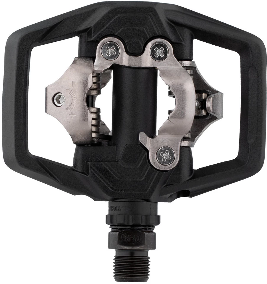 Die Shimano Klickpedale PD-ME700 für den Enduro- und All-Mountain-Einsatz bieten dank ihrer breiten Schuh-Kontaktfläche viel Stabilität und sehr gute Kraftübertragung. Der integrierte Pedalkäfig sorgt für Kontrolle auch im ausgeklickten Zustand und schützt zudem die beidseitige SPD-Bindung vor Beschädigungen. Außerdem überzeugt das PD-ME700 mit seiner einstellbaren Auslösehärte und seinem wartungsarmen Kompaktlager.