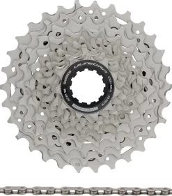 Diese Ultegra Di2 R8150 Road Komplettgruppe von Shimano besteht aus einer 2×12-fach-Kurbel mit 34-50-Zähne-Abstufung, einem Flat-Mount-Scheibenbremsenset und einem elektronischen Schaltwerk sowie Umwerfer für semi-kabelloses Schalten. Natürlich sind auch ein Akku, eine Quick-Link-Kette und eine Kassette mit 11-30 oder 11-34 Zähnen mit dabei.