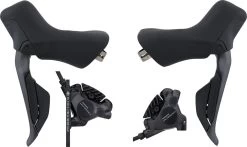 Diese Ultegra Di2 R8150 Road Komplettgruppe von Shimano besteht aus einer 2×12-fach-Leistungsmesskurbel mit 36-52-Zähne-Abstufung, einem Flat-Mount-Scheibenbremsenset und einem elektronischen Schaltwerk sowie Umwerfer für semi-kabelloses Schalten. Natürlich sind auch ein Akku, eine Quick-Link-Kette und eine Kassette mit 11-30 oder 11-34 Zähnen mit dabei.