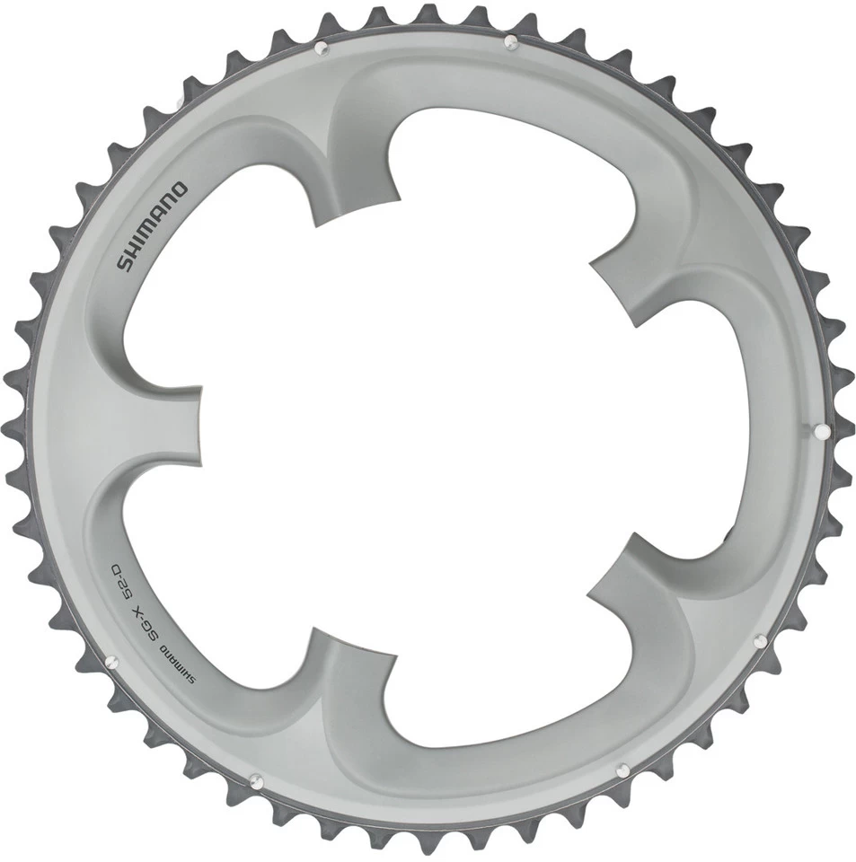 Dieses Shimano Ultegra Kettenblatt ist mit der FC-6703 Triple Kurbel kompatibel. Es ist auch in Grau erhältlich, damit es optisch zur Ultegra „Glossy Grey“ FC-6703-G Kurbel passt. Das SG-X Design mit speziellen Zahnprofilen und Steighilfen sorgt für superweiche Schaltfunktion im HyperDrive 10-fach Antriebsverbund. Als besonderer Clou wird das 52-Zähne-Kettenblatt hohlgefertigt, was Gewicht spart (Hollowglide).