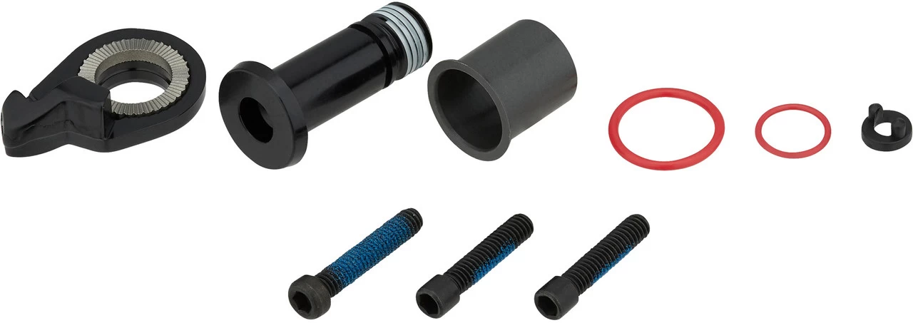 Lieferumfang:1 x B-Schraube SRAM1 x Flanschbuchse SRAM1 x Unterlegscheiben-Set2 x O-Ring1 x Schraube2 x Begrenzungsschraube