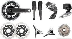 Lieferumfang:1 x Kurbelgarnitur SRAM Red DUB 2-fach AXS1 x Kassette SRAM XG-12901 x Kette SRAM Red 12-fach1 x Kettenschloss SRAM PowerLock1 Paar Schalt-/Bremsgriffe SRAM Red eTap AXS HRD FM1 Paar Scheibenbremsen SRA