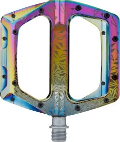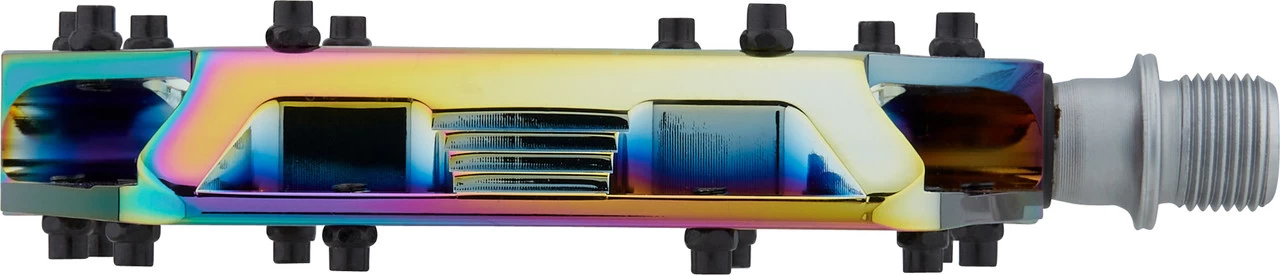 Spezifikationen:Einsatzbereich:Downhill, All Mountain, Cross Country, Dirtjump & Slopestyle, EnduroAusführung:PlattformpedaleTechnische Daten:Material Pedalkörper:Aluminium (6061)Material Achse:Stahl (CroMo)Maße [L x B]:11,7 x 11 cmAnzahl Pins pro Pedal:20Features:CNC-gefräste Aluminium-Plattform mit Oil-Slick-Finishgroße Standfläche mit 10 austauschbaren Pinsselbstschmierende, ultraleichte, abgedichtete Lagerrobuste Achsen aus CNC-gefrästem CroMo-Stahlgelaserte GrafikHerstellernummer:PD-06